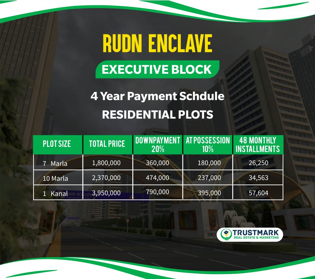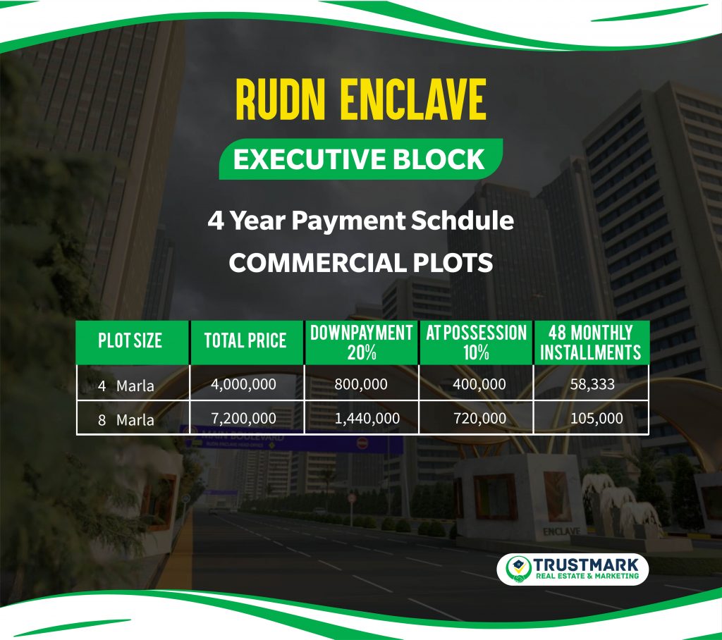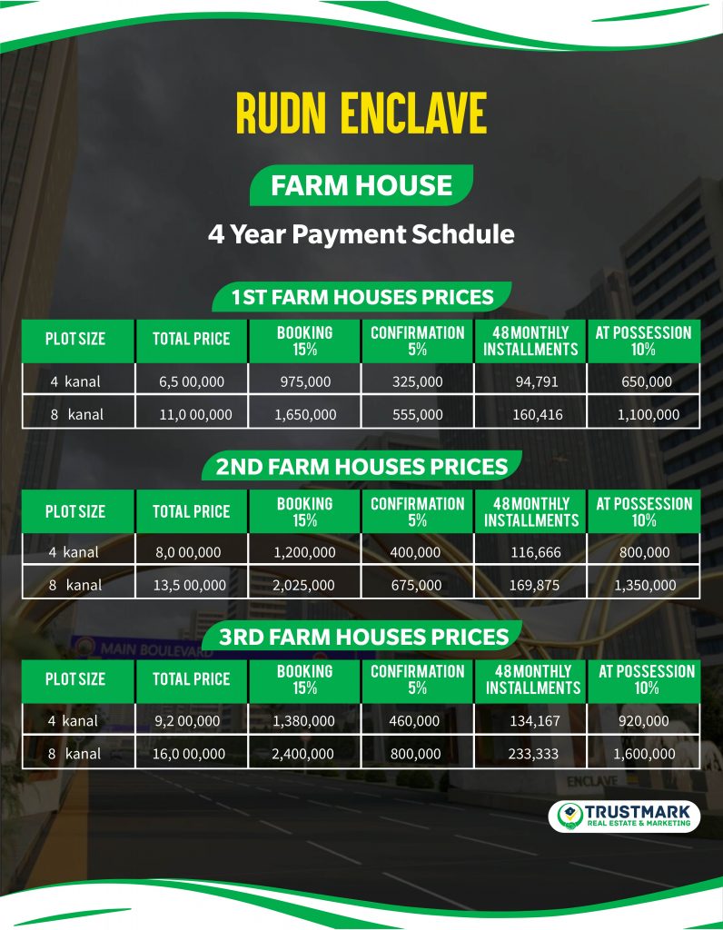 RUDN Enclave Matser Plan is designed by NESPAK. Thus, undoubtedly, its master plan will be a master piece from every aspect. Total area of RUDN Enclave is more than 10,000 Kanal. Whole society divided in to Residential Commercial & Formhouses. It offers residential units in following categories: